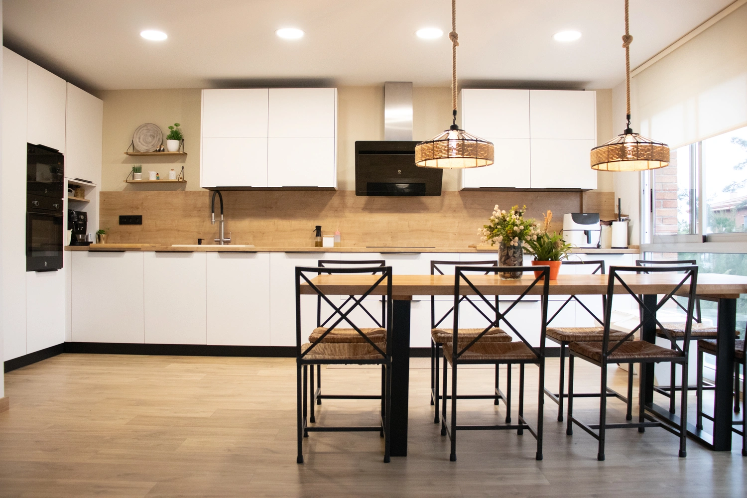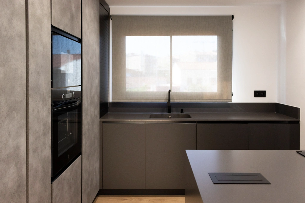 La elección de los materiales es fundamental: apostamos por superficies resistentes y estéticamente atractivas que perduran en el tiempo, haciendo que la cocina sea tanto un lugar práctico como visualmente agradable.
